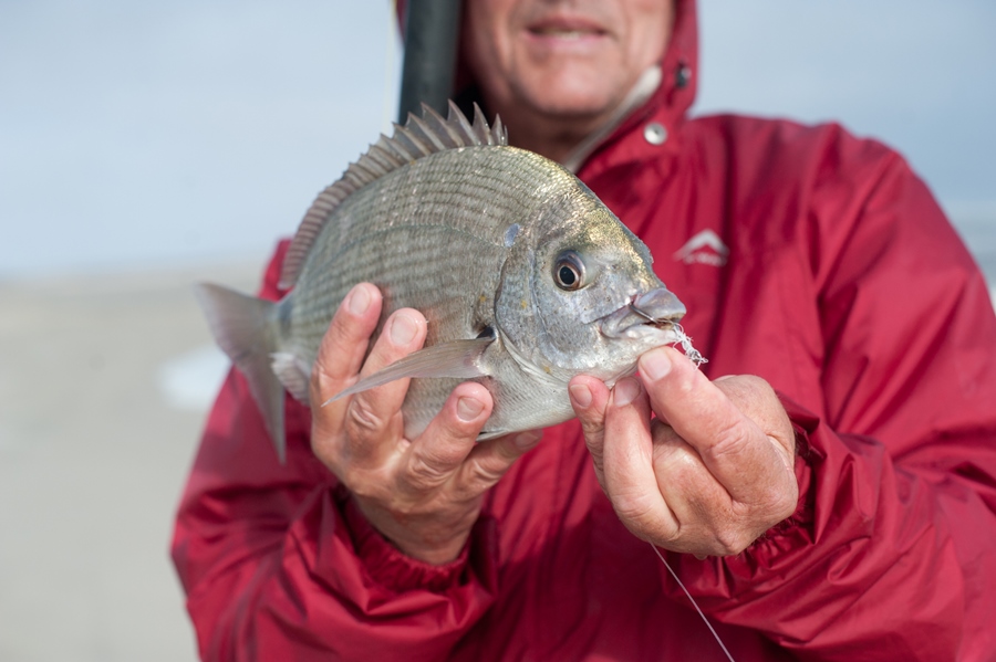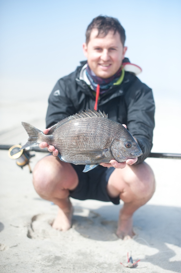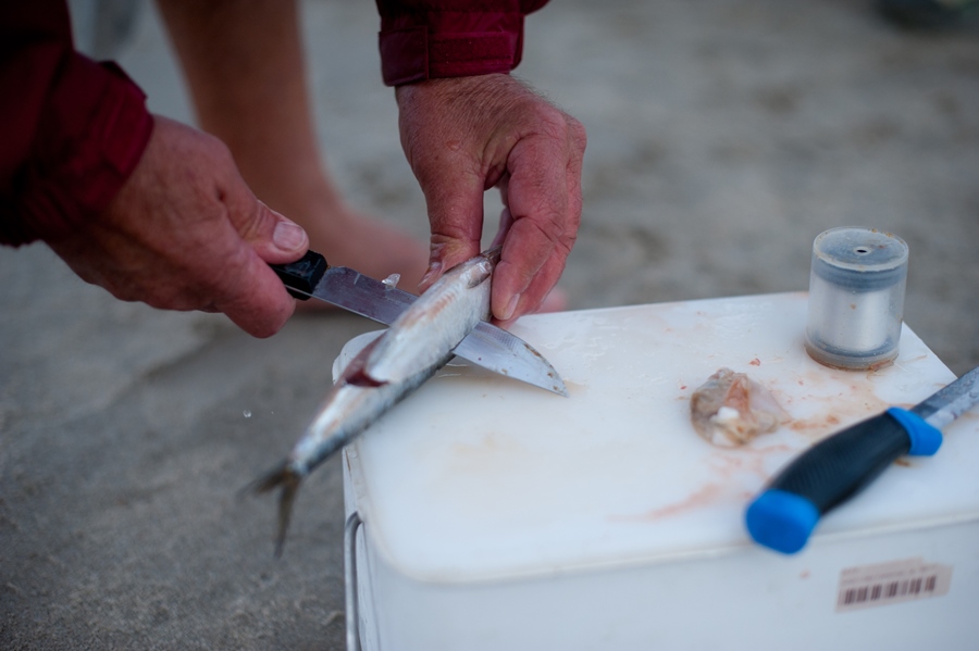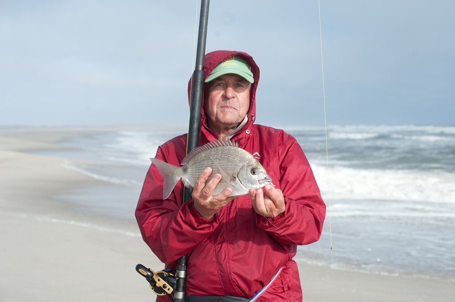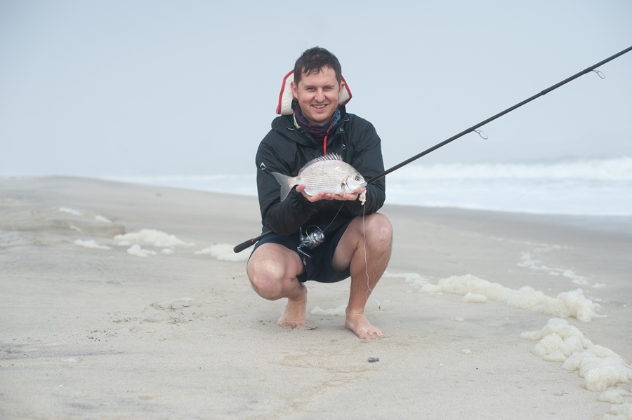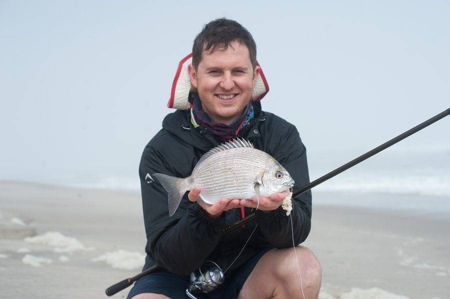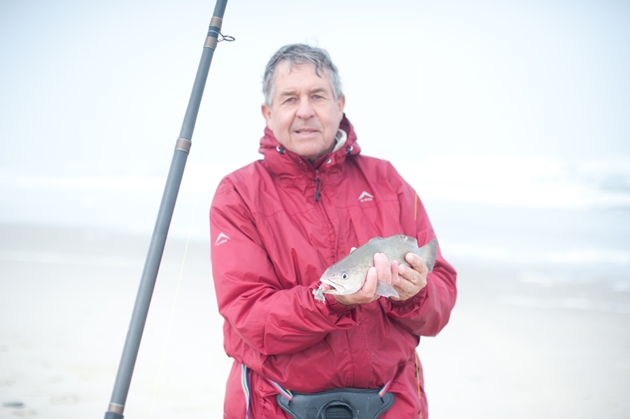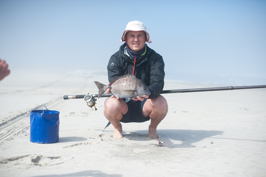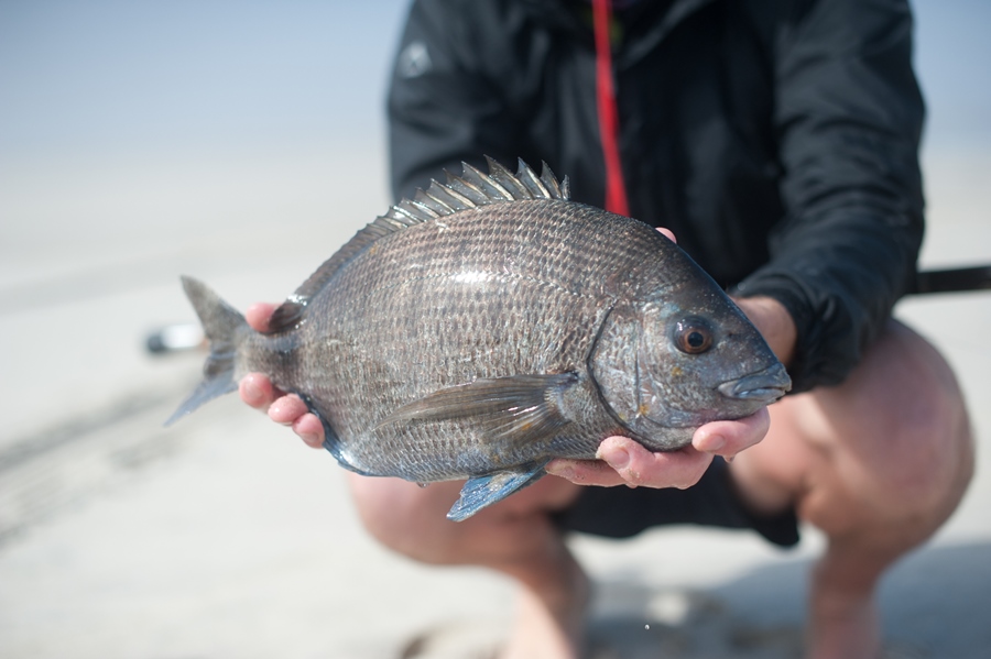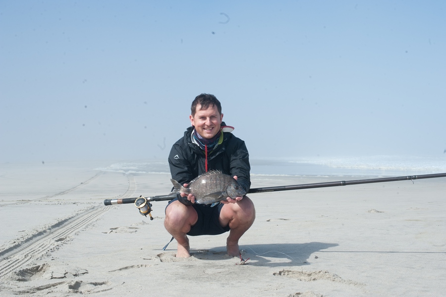 At low tide we ventured a little down the beach to skuinsrif. Unfortunately the water was too rough to get onto any of the rocks and there was not much chance for the fish to come in close to the side either. When the visibility in the water is very bad, it is sometimes good to use the belly of the sardine as the extra smells will help to better attract a fish to your bait.