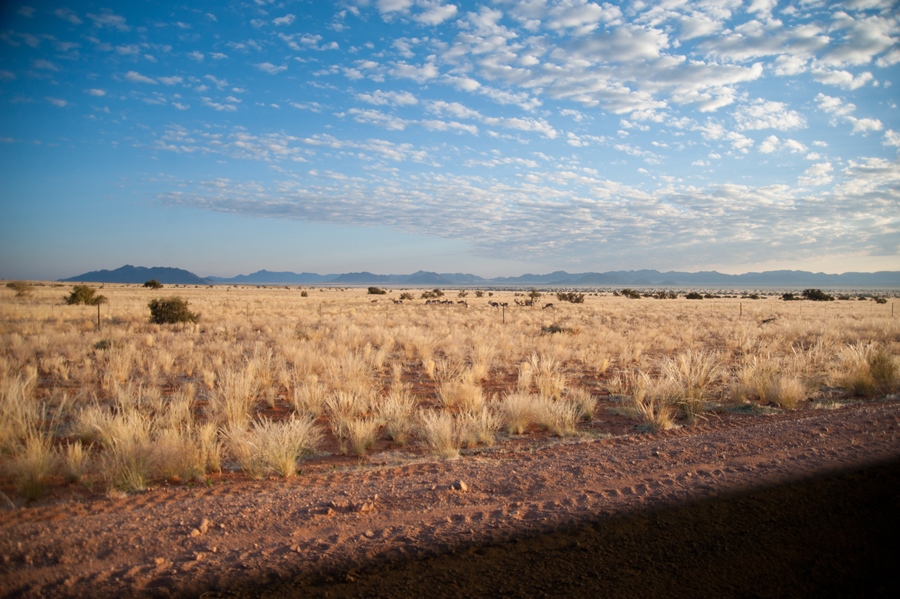 We travelled inland with the vista of the Spitzkoppe in the eastern background. Free roaming springbuck and patches of grassland filled the picture.