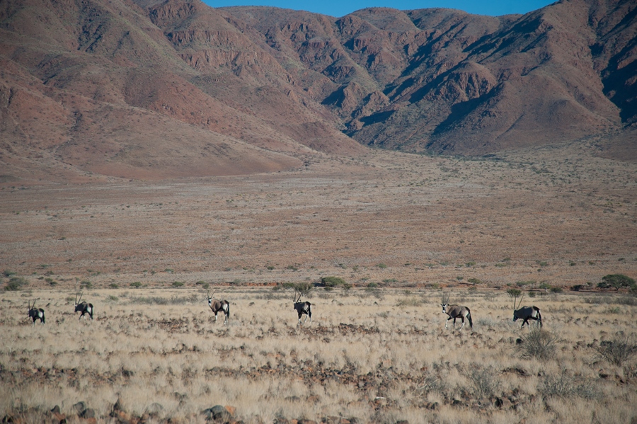A long day lay ahead, with much driving to do and much to see. We stopped for breakfast along the roadside in the NamibRand Nature Reserve. As we grazed on our biltong and cheese sarmies with a hot cuppa, we were joined by a herd of Gemsbuck also enjoying their breakfast next to the roadside; is it normal to feel a little guilty chewing on a piece of biltong?
